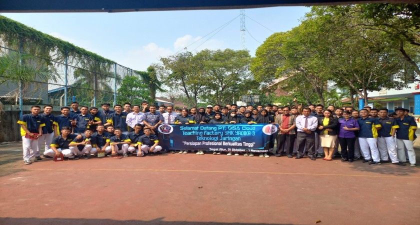 Selasa, 31/10/23. Membukaan Teaching Factory bersama PT. Disa Cloud yang berlangsung selama 2 hari, yang diikuti seluruh siswa/i dari kelas 12 TKJ. Pada Teaching Factory kali ini bertujuan agar siswa dapat menyerap ilmu yang diberikan oleh pemateri, serta apa saja yang akan dilakukan untuk persiapan kerja ketika siswa sudah lulus.