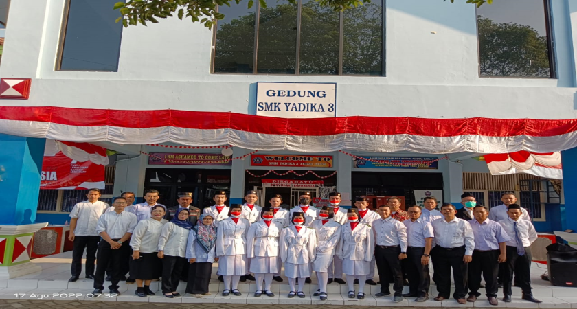 Upacara Hari Kemerdekaan Republik Indonesia yang ke-77 diselenggarakan di SMK Yadika 3 dan diikuti oleh seluruh Guru serta Siswa/i dipimpin oleh Kepala Sekolah SMK Yadika 3 L.Ritonga, S.Kom. Dalam kesempatan ini dibacakan Teks Proklamasi serta naskah sambutan Kepala Sekolah dalam Peringatan Hari Proklamasi Kemerdekaan 2022. Proklamasi 1945 adalah sumber kekuatan dan sumber tekad perjuangan dan dapat diibaratkan sebagai puncak ledakan seiring kohesi total nasional, dimana seluruh tenaga dan pikiran, kekuatan material, dan spiritualitas bangsa Indonesia menyatu dalam tekad: MERDEKA!!! MERDEKA!!! TANAH NEGERIKU YANG KUCINTA.